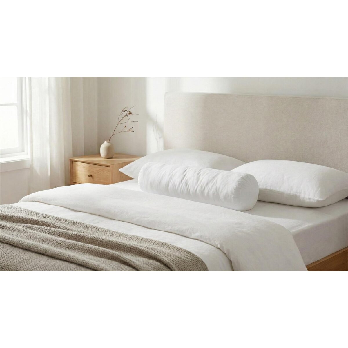 Die Nackenrolle/Knierolle besteht aus hochwertigen Materialien mit einer Materialzusammensetzung von 100 % Baumwolle. Die Füllung besteht aus 90 % Daunen und 10 % Federn, was für zusätzlichen Komfort und eine weiche Haptik sorgt.